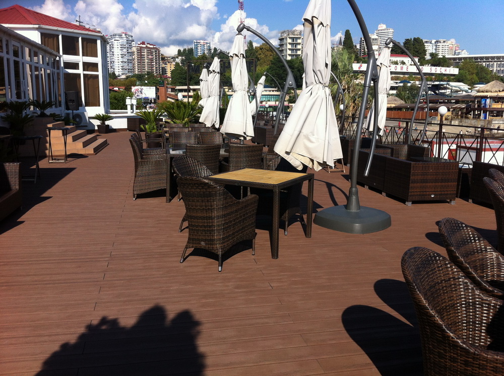 Когда будете в Сочи, обязательно посетите данное кафе, чтобы убедиться в качестве террасной доски Woozen!